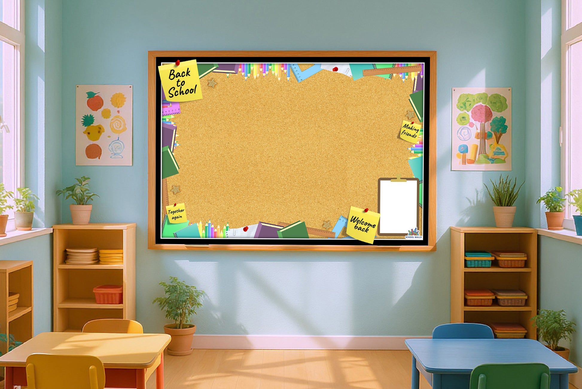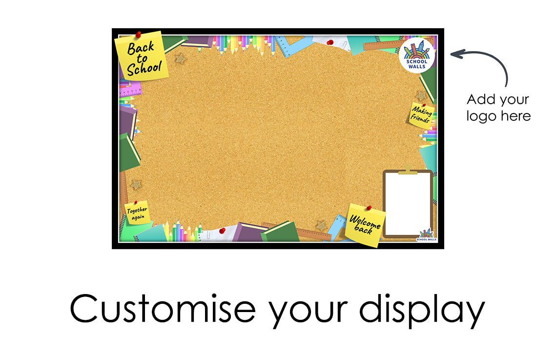 Welcome pupils back with our Back to School Vinyl Display, designed to create a warm and inviting classroom atmosphere from day one. Featuring a realistic corkboard-style background, this versatile display is perfect for showcasing welcome messages, class information, or pupils’ first pieces of work.