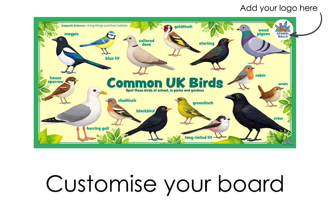 Create an engaging learning environment where children can recognise, name and talk about common birds found in their local area with the Common UK Birds learning board.