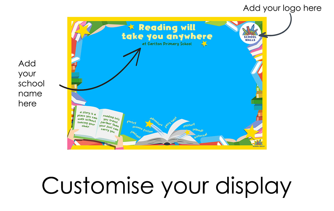 Inspire a love of books and imagination with our Reading Will Take You Anywhere Vinyl Display, a vibrant backdrop designed to celebrate reading adventures in the classroom. Made easy for teachers to add book reviews, author studies, reading challenges or children's work, this display turns your reading corner into a place of excitement and discovery.